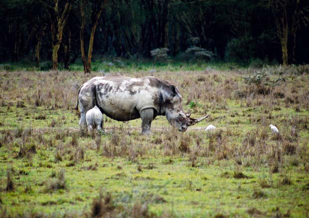 シロサイの親子。子供のサイは、ぬいぐるみみたいで、すごく可愛い。